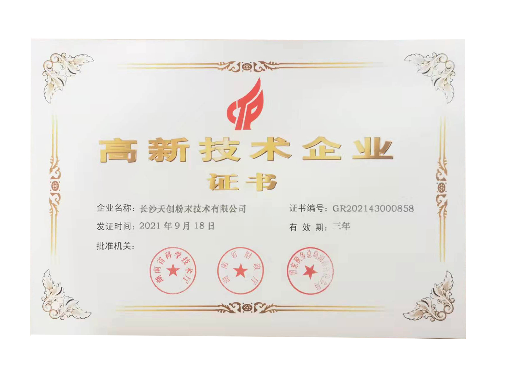 摘要:長沙天創(chuàng)粉末技術(shù)有限公司獲得高新技術(shù)企業(yè)稱號