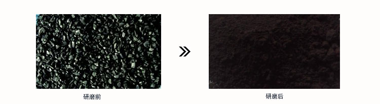 (5)結果(建議):可以使用行星球磨機XQM-4研磨活性碳; (6) 研磨結果:100%<50μm .