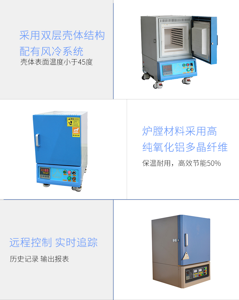 爐門為側開式,具有開門斷電、超溫報警、漏電保護等安全操作。