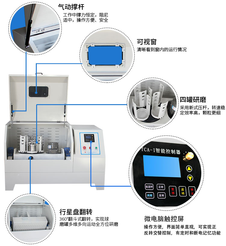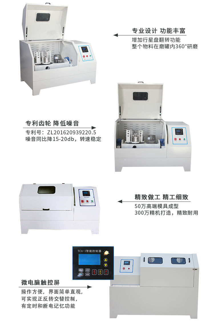 三、天創粉末360度旋轉行星球磨機特點