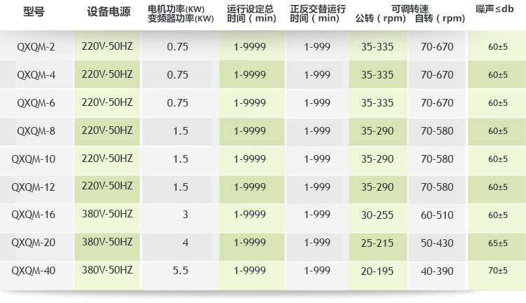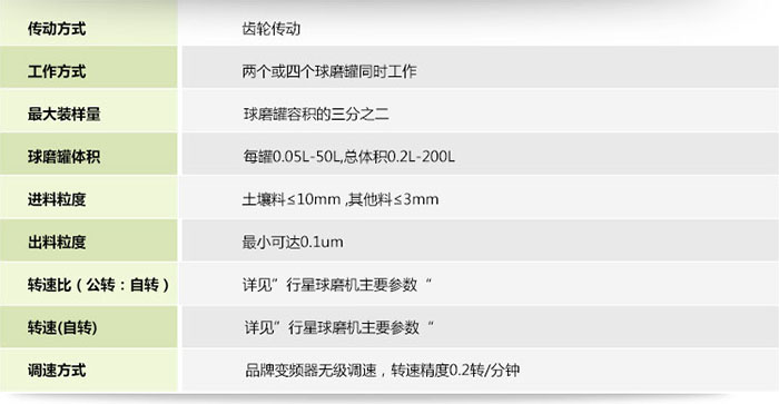七、360度旋轉行星球磨機參數: